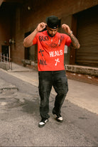 Our God Heals All Graphic Tee is made from oversized heavyweight cotton for a bold fit and premium feel. Featuring powerful faith-based artwork, including a heart with wings labeled “Our Savior”, multiple cross designs, and the full phrase “God Heals All” spread across the front, this tee is designed to stand out and speak truth.
